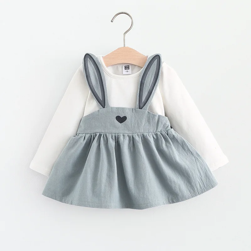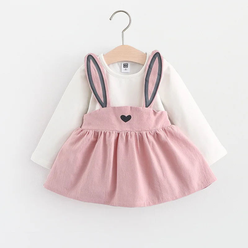 Related Product for Infant girl baby clothes dress cartoon rabbit ears rabbit fake strap dress autumn long sleeve For g